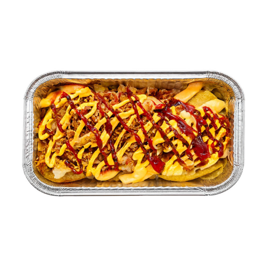 Картофель Бекон Лук фри Соус сырный Соус барбекю